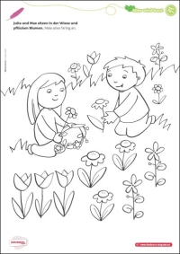 Wer steht im Freien und friert nicht? Male die Felder den Zahlen und Farben entsprechend aus!